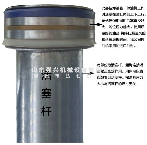 ② 活塞直徑等于油缸內(nèi)徑。壓榨時(shí)伸出的部分是活塞桿,而并不是活塞。